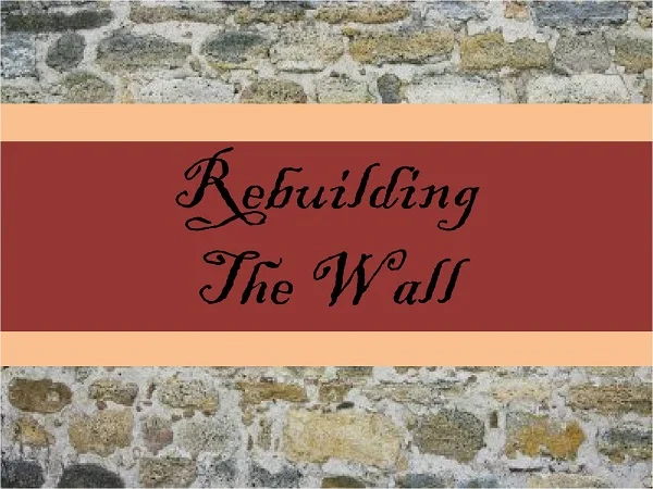 When we look across the American church's landscape, we see a lot of great things, but also see some issues. Like any movement, things can become bogged down with regulations and committees and other various "necessary" controls. The problem is that all these "necessities" can overwhelm the purpose of the movement's existence and turn it into a massive organization, losing its identity. Good thing THAT hasn't happened! Either way, when we look at the church, if we imagine it to be a city, maybe with some fortified walls, we might see those walls crumbling, or maybe huge holes in the walls from attacks and disrepair. When we look at the story of Nehemiah, we see a man given a massive task by God to return to his homeland and rebuild the city's walls. The walls of that once mighty city were in terrible shape, making the recently returned inhabitants vulnerable to attack. As God called Nehemiah then to rebuild His city, God calls the church today to stop, take a true inventory of her condition, and start rebuilding where needed.